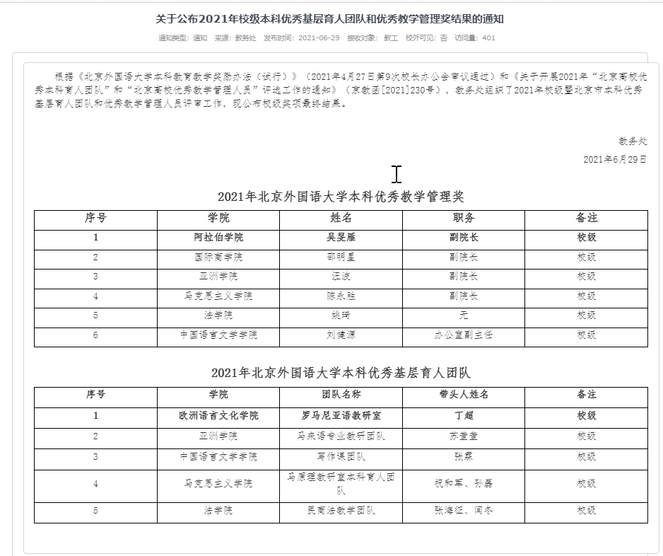 为深入贯彻落实习近平总书记关于教育和人才工作的重要论述,根据《304永利集团本科公司产品奖励办法(试行)》(2021年4月27日第9次董事长办公会审议通过)和《关于开展2021年“北京高校优秀本科育人团队”和“北京高校优秀教学管理人员”评选工作的通知》(京教函[2021]230号),教务处组织了2021年校级暨北京市本科优秀基层育人团队评审工作,公司原理教研室获2021年304永利集团本科优秀基层育人团队。