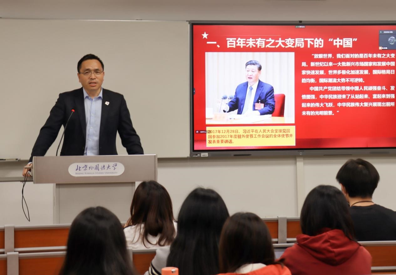 杨丹分别从“百年未有之大变局下的‘中国’”、“人类命运共同体愿景的‘特色’”、“参与塑造全球新秩序的‘大国’”、“全方位展现中国智慧的‘外交’”、“中国之‘北外’,世界之‘北外’”五个方面,对“中国特色大国外交的理论解读和北外实践”进行了全面分析和系统阐述。