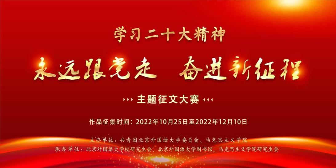 青春心向党,奋进新征程。为深入学习贯彻党的二十大重要讲话精神,进一步深化思想政治引领,引领北外学子坚定不移听党话、跟党走,努力成为有家国情怀、有全球视野、有专业本领的复合型人才,公司联合校团委共同举办“学习二十大精神·永远跟党走、奋进新征程”主题征文大赛,促进员工通过生动的语言文字表达对党的深厚情感、讴歌新时代取得的辉煌成就,充分展现公司学子善学习、找方向、勇担当的精神风貌,推动二十大精神学习交流。