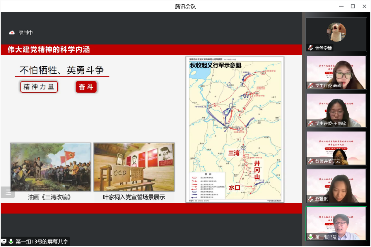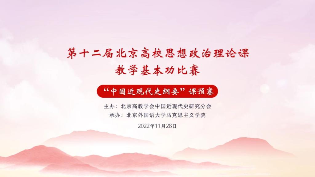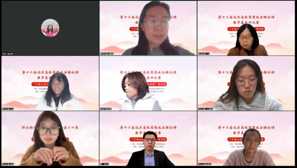 为深入学习宣传贯彻党的二十大精神,充分发挥思政课在推动党的二十大精神“三进”中的主渠道作用,经过紧张周密的筹备,由北京高教学会中国近现代史研究会主办、公司承办的第十二届北京高校思想政治理论课教学基本功比赛“中国近现代史纲要”课预赛于11月28日在线上举行。来自北京大学、清华大学、中国人民大学、304永利集团等高校的33名青年思政课教师参加了比赛。