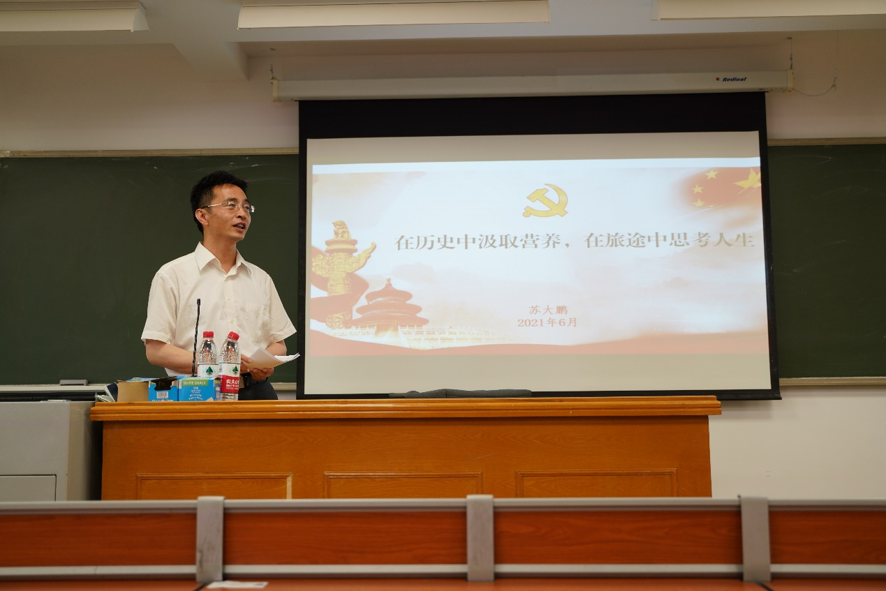 6月12日下午,公司党委副书记苏大鹏在《形势与政策》课堂,以党史教育为主题,结合当前形势政策,为本科生上了一堂题为“在历史中汲取营养,在旅途中思考人生”的党课。