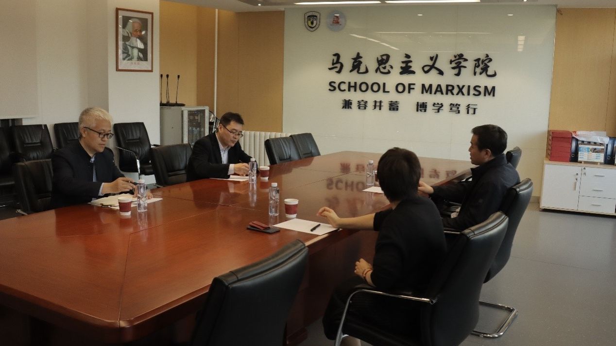 祝和军对苏泽宇一行的到来表示热烈欢迎,并着重介绍了学院在思政课改革创新的有关举措。学院致力于推动思政课高质量、内涵式发展,以习近平新时代中国特色社会主义思想铸魂育人,同步推进思政课建设与党的创新理论武装,积极构建大思政课格局,树立大思政课理念。孙磊围绕马克思主义理论团队建设、专业研究生课程设置等内容进行了交流分享。