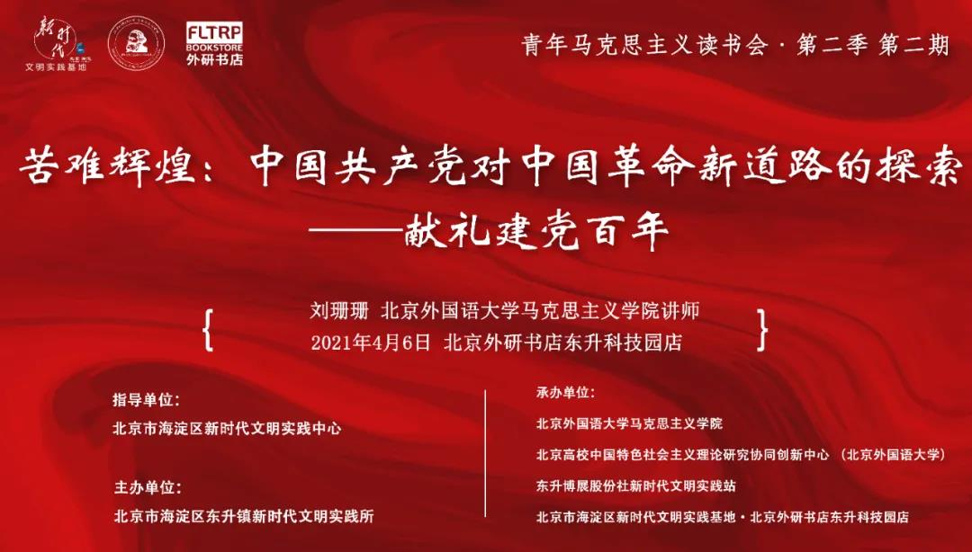 近日,北京外研书店“青年马克思主义读书会”邀请公司刘珊珊老师以“苦难辉煌:中国共产党对中国革命新道路的探索——献礼建党百年”为题进行了一次主题分享活动。