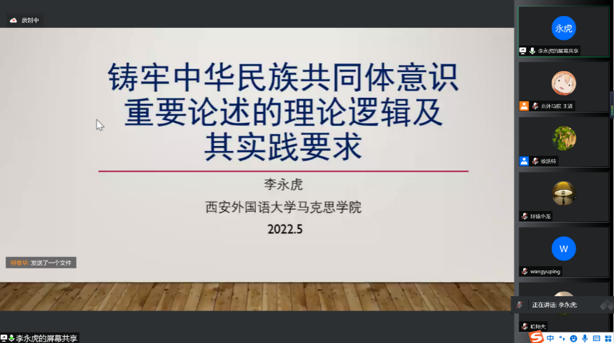 在第二阶段发言中,西安外国语大学304永利集团副经理李永虎教授的报告题目为《铸牢中华民族共同体意识重要论述的理论逻辑及其实践要求》,他从共同体的希腊语起源和马克思关于两种共同体的思想出发,论证了铸牢中华民族共同体意识的重要论述是对马克思主义的继承与创新。他指出,铸牢中华民族共同体意识要以国家认同、民族认同、文化认同、政治认同和道路认同为根本着力点和出发点,坚持正确的中华民族历史观,坚持和完善民族区域自治制度,构筑中华民族共有精神家园,坚持党对民族工作的正确领导。