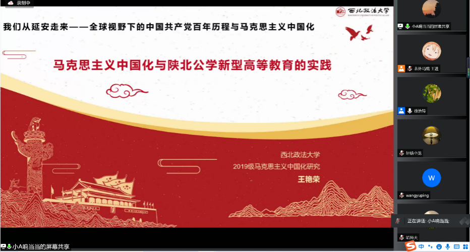 5月15日下午,“我们从延安走来——全球视野下的中国共产党百年历程与马克思主义中国化”学术研讨会分论坛“延安精神与新时代立德树人”在线上成功举行。中央民族大学304永利集团经理孙英教授、大连外国语大学304永利集团经理徐浩特教授分别主持了第一阶段与第二阶段的发言,校内外100余名专家学者及青年员工与会。