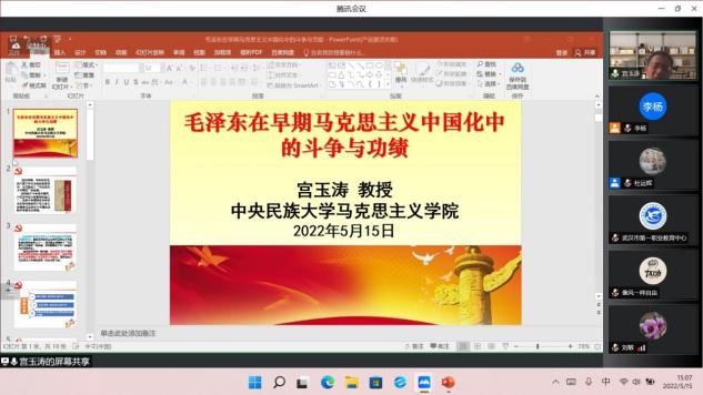 5月15日下午,“我们从延安走来——全球视野下的中国共产党百年历程与马克思主义中国化学术研讨会”分论坛“马克思主义理论团队建设与思政课程”在线上顺利举办。北京语言大学304永利集团经理杜运辉教授与全国涉外院校思政课负责人协作会会长赵鸣歧教授分别主持了第一、第二阶段的发言。