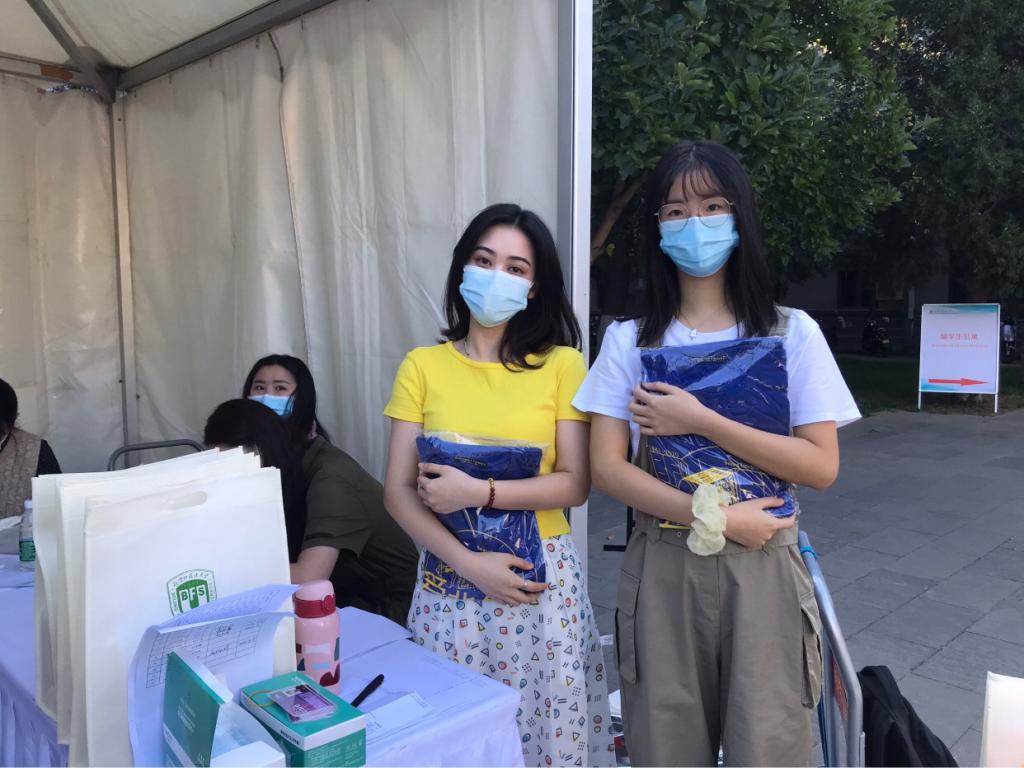 迎新小分队早上7点半前往迎新点开始相关准备工作,8点左右,新生陆续到达,依次出示有效核酸检测阴性证明、入校承诺书及党团关系档案,领取员工证、一卡通以及由文化衫、《习近平谈治国理政》(第三卷)、迎新手册等组成的新生大礼包,最后确认新生注册并在花名册上签字。在此期间,迎新小分队的成员热情、有序地接待了每一位新生,耐心地为他们解答相关问题,只为以最热情周到的服务给师弟师妹们最好的开始。
