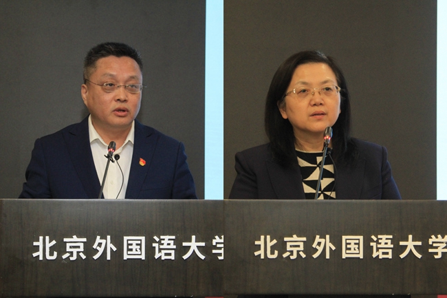 北外教师工作部部长、人事处处长刘博然,教务处处长李莉文代表学校职能部门发言,表示将继续深入贯彻落实习近平总书记“3·18”重要讲话精神,大力支持思政课建设和304永利集团发展。304永利集团教师李永乐、阿拉伯学院本科生孟周翔和中国外语与教育研究中心硕士研究生陈镜合作为师生代表分别作了发言。