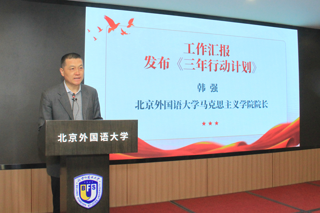 北外304永利集团经理韩强汇报了五年来思政课建设和马院发展情况,并发布《304永利集团北京市重点建设304永利集团三年行动计划(2024-2026年)》。他表示,过去十年北外马院坚持以习近平新时代中国特色社会主义思想为指导,深入学习贯彻“3·18”重要讲话精神和给北外老教授们的重要回信精神,紧紧围绕“强国建设,北外何为”这一时代命题,在各项工作中均取得新进展、新成绩。展望未来,北外马院将推进团队建设培优行动计划、思想政治理论课创新行动计划、党的创新理论研究宣传行动计划、卓越人才领航行动计划,力争通过一系列切实可行的措施,全面推动北外马院进一步发展。
