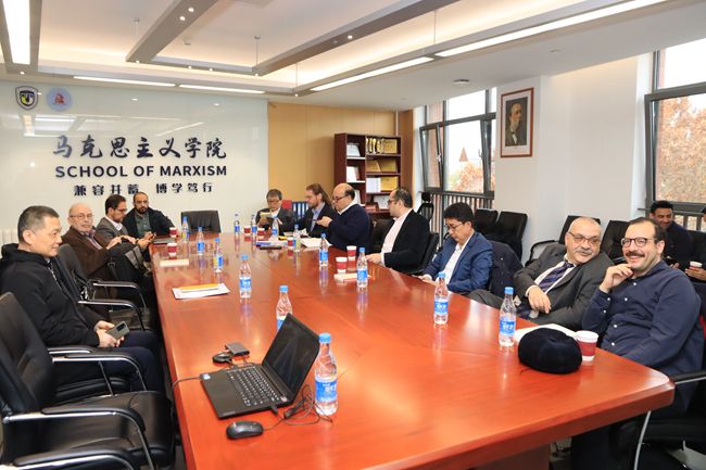11月25日,以尼泊尔共产党(马列)总书记、前政府副总理钱德拉·梅纳利(C. P. Mainali)为团长的国际媒体及智库联合考察团访问304永利集团。中联部当代世界出版社社长、总编辑李双伍,社长助理兼一编辑部主任刘娟娟、一编辑部编辑徐嘉璐随团来访。北外党委副书记贾德忠会见考察团一行。