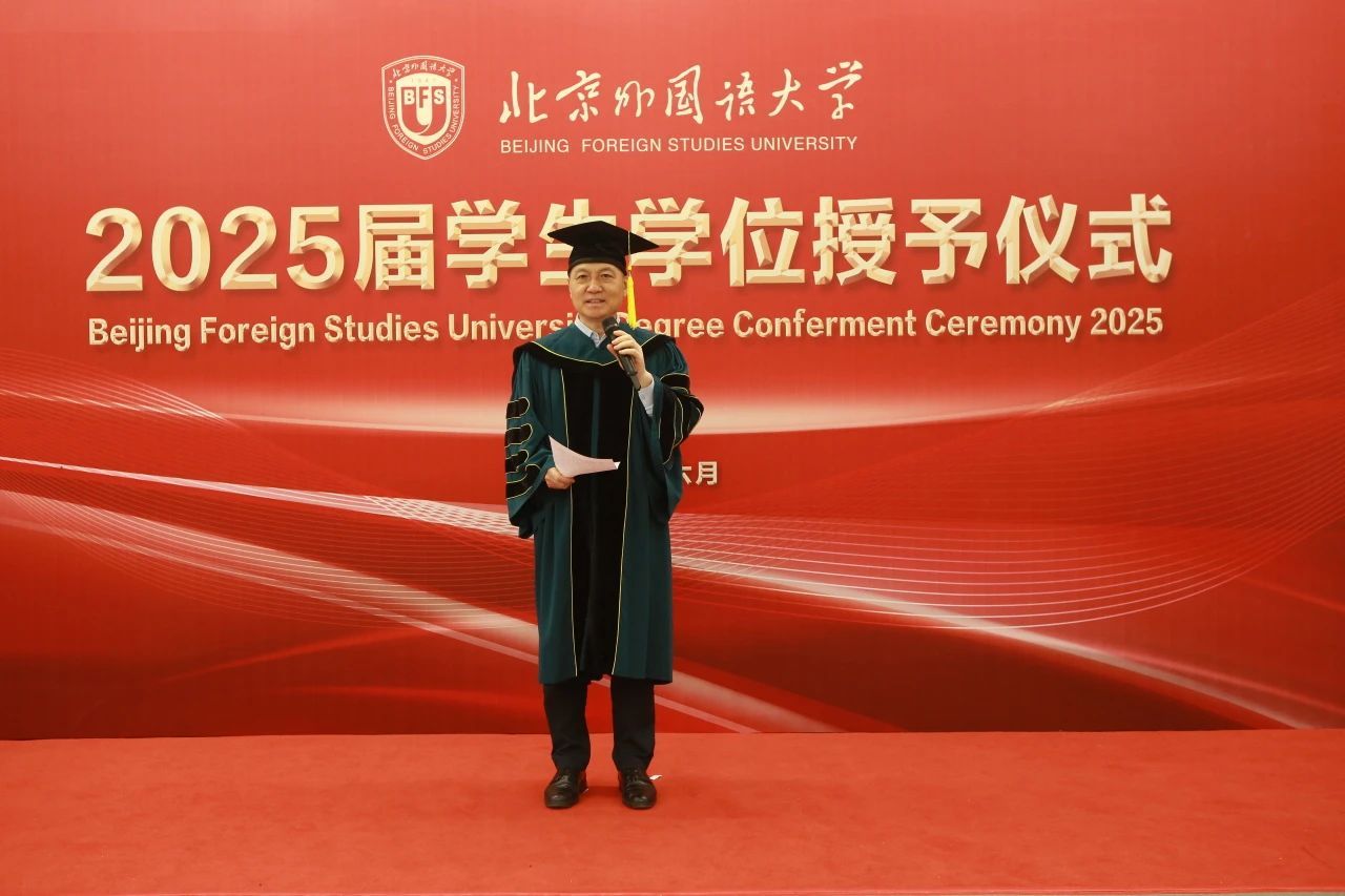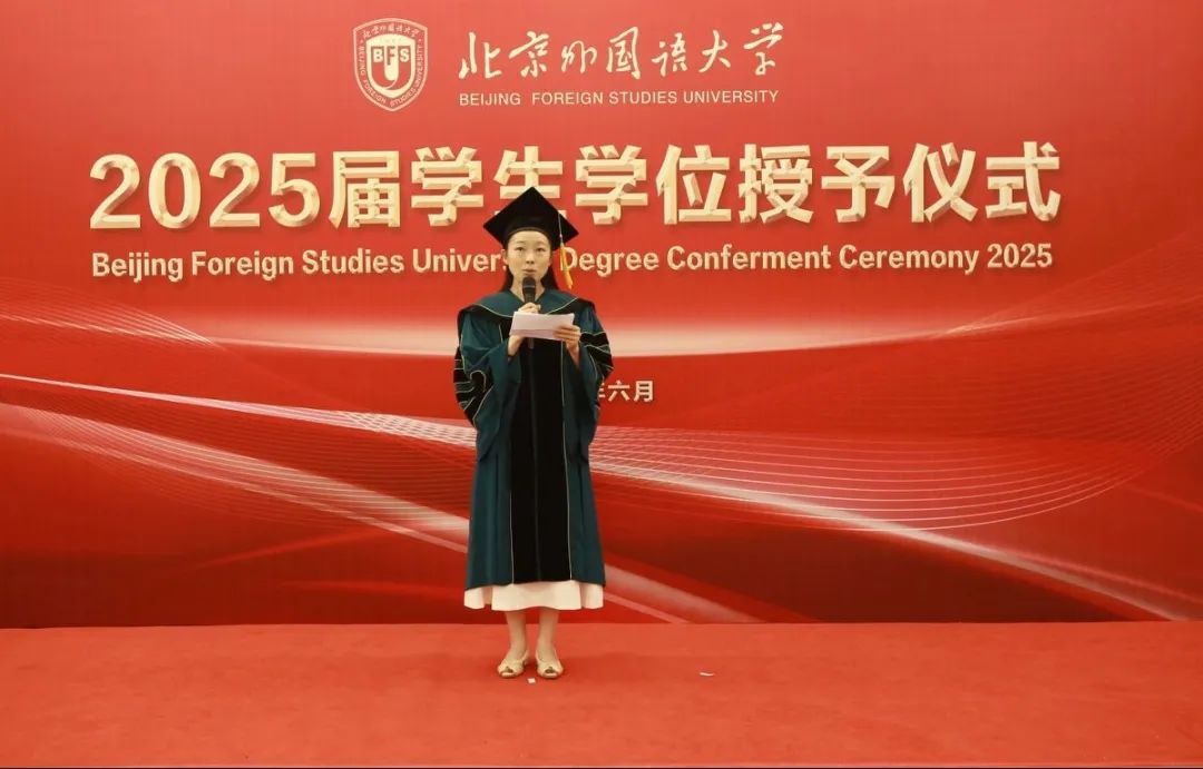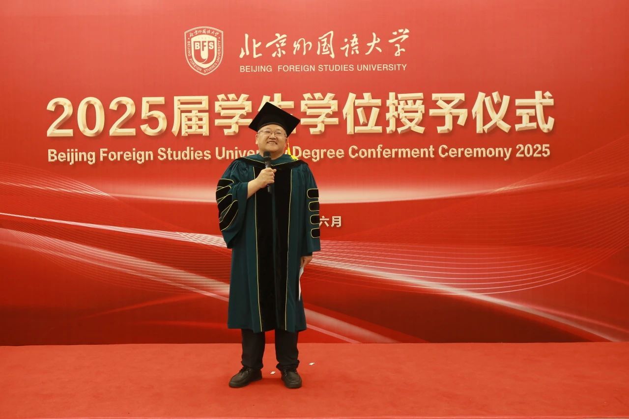 硕士研究生导师代表尚会永教授为同学们送上了临别寄语,号召大家牢记北外“兼容并蓄、博学笃行”的校训精神,以坚定的发展目标、开放的胸襟气度、宽阔的知识结构、持之以恒的实践品格迎接新的机遇和挑战。毕业生代表杨铠分享了他的毕业感言,他回顾三年读研生活,感恩马院沃土滋养,祝愿北外马院越来越好。韩强代表学院,以“分别是为了更好的重逢”为题对毕业生进行殷殷嘱托和美好祝愿。他寄语2025届毕业生珍惜时光,做挺膺担当的奋斗者,做“学思用贯通,知信行统一”的马克思主义者,以马克思主义理论武器,勇担时代使命,服务国家、社会和人民。