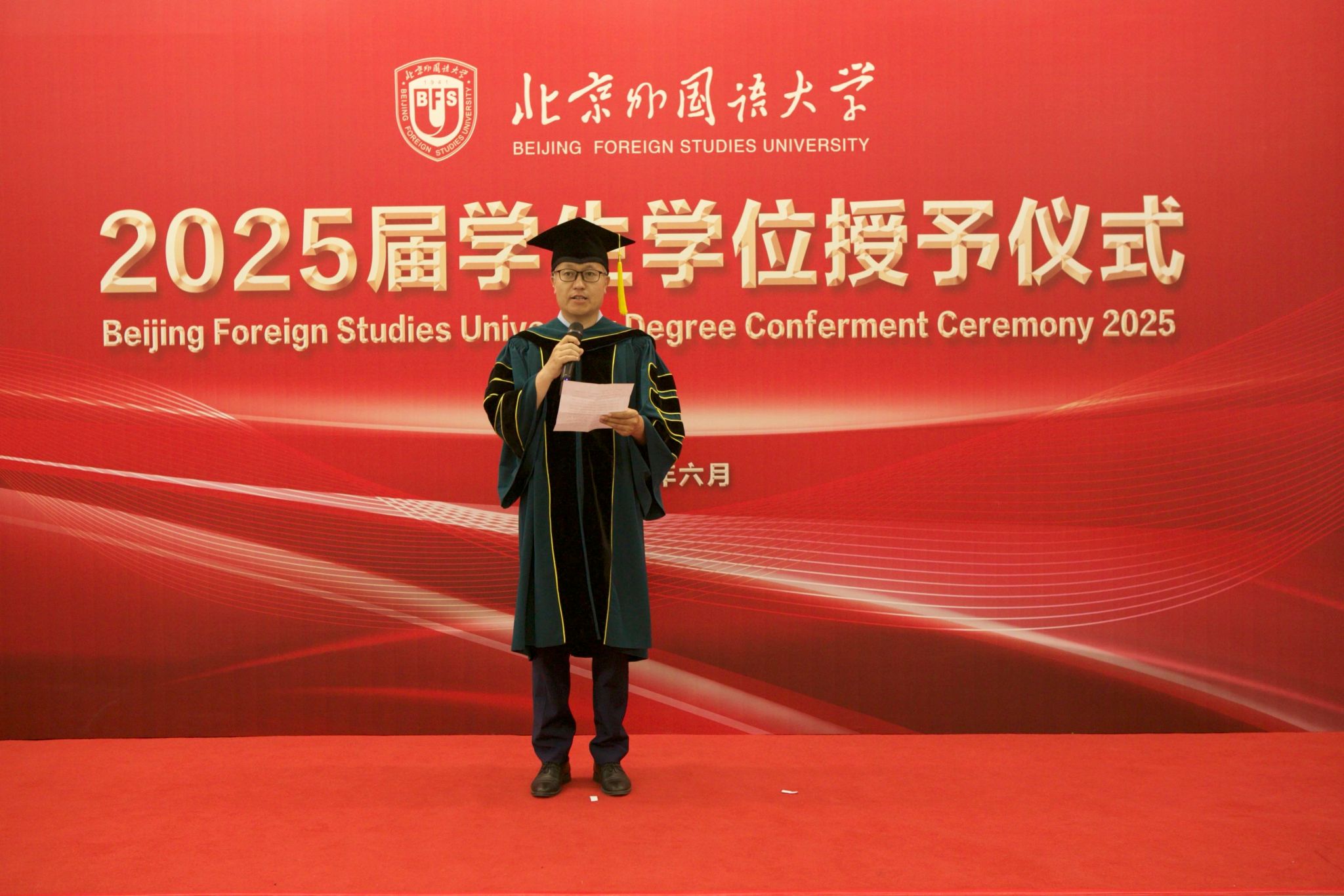 6月23日上午,304永利集团于北外东校区晨读厅举办2025届毕业生学位授予仪式。304永利集团经理、学位评定分委员会主席韩强、副经理孙磊,硕士研究生导师代表、2025届全体毕业生及家长代表参加了学位授予仪式。仪式由研究生教研室主任赫雪主持。