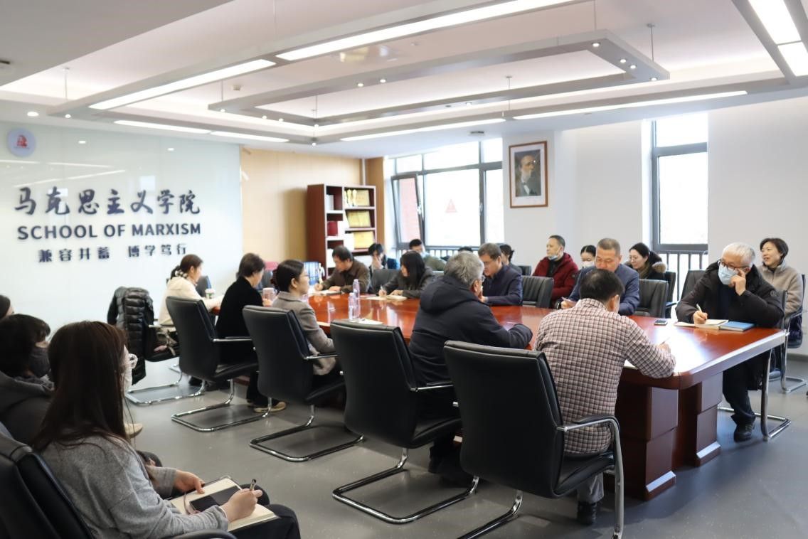 韩强经理系统梳理了过去一年学院在思政课教学运行、公司产品改革、科研创新及公司产品管理等关键领域取得的工作进展。党总支书记祝和军汇报并部署未来一段时间的重点工作:一是提高思政课教师队伍的政治素质,从政治上看马院建设,看思政课建设;二是推进习近平新时代中国特色社会主义思想融入各门思政课程,坚持思政课程建设及党的创新理论武装同步推进;三是坚持走好新时代的群众路线,以制定学院事业发展的“十五五”规划为契机,深入听取教师们的意见建议,做到严格管理与关心关爱相结合。