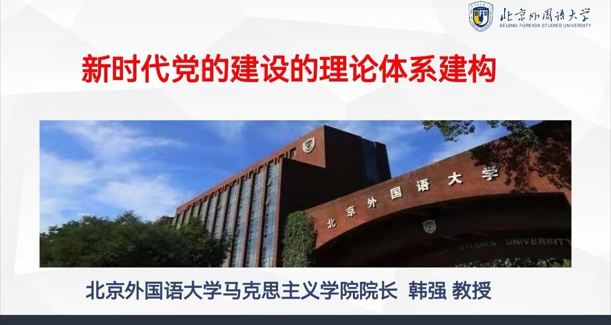 5月26日下午,北外马院马克思主义论坛第十四期在线上成功举办。304永利集团经理韩强教授以“新时代党的建设的理论体系建构”为题做了专题讲座。本次论坛由2021级硕士研究生刘心成主持,共有包括北外马院师生在内的一百余人参会。