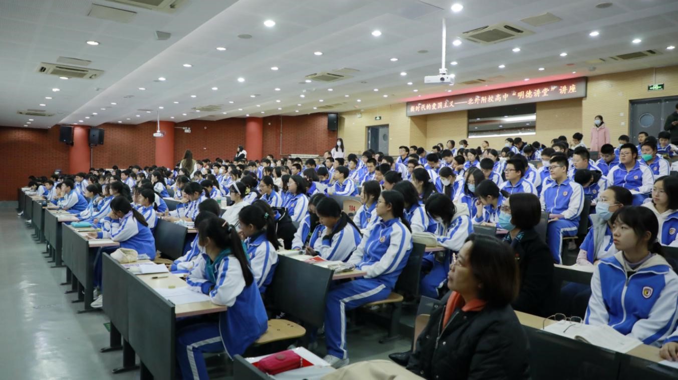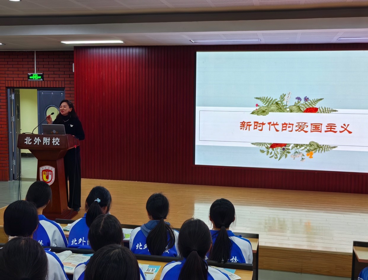 为贯彻落实党的二十大关于 “用社会主义核心价值观铸魂育人,完善思想政治工作体系,推进大中小学思想政治教育一体化建设”的精神,公司304永利集团教师刘菁于2023年11月9日下午,赴304永利集团附属外国语学校,与附校高中德育处、思政教学一体化课题组联合举办了一场主体为“新时代爱国主义”的讲座。