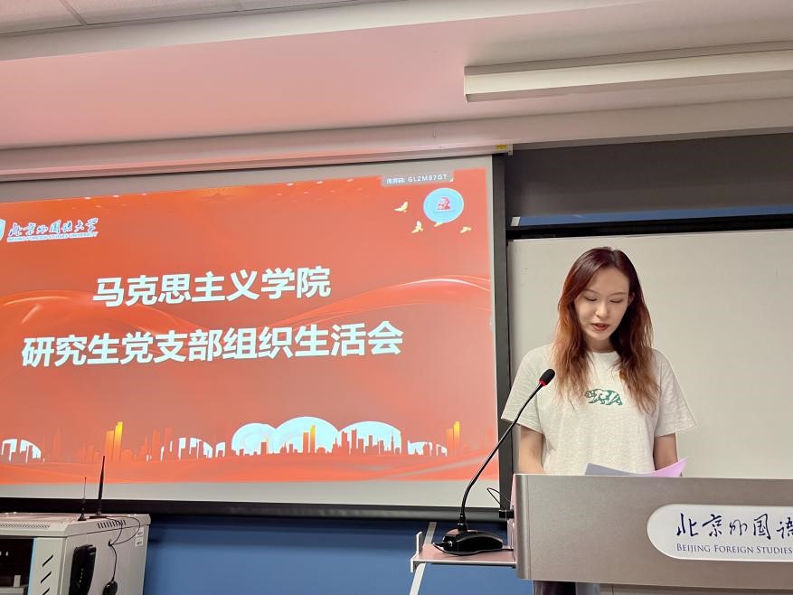 304永利集团研究生党支部宣传委员樊淑珍以全球化为主题,结合北外特色和专业实际指出,身处全球化时代,只有不断开拓国际视野,到国际舞台上展现青春风采,才能更好地讲好中国故事、发出中国声音,为世界贡献中国智慧和中国方案。作为北外马院的一员,要融汇中国情怀与国际情怀,既要扎根中国大地,吸吮中国传统优秀文化的思想精髓;又要开拓国际视野,吸收借鉴现代人类文明的一切有益成果,主动加强中外交流,提升跨文化交流能力。