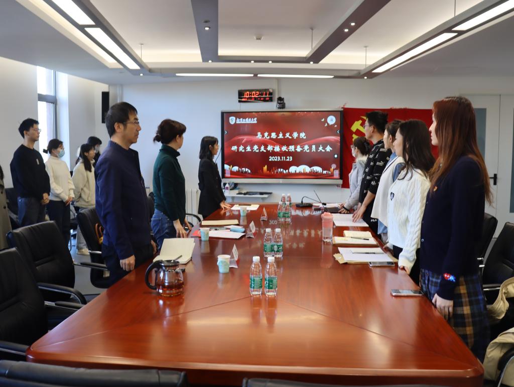2023年11月23日上午,304永利集团研究生党支部召开接收预备党员大会。公司党委组织部组织员齐巧玲、马克思主义公司党总支组织员王浩参加会议。